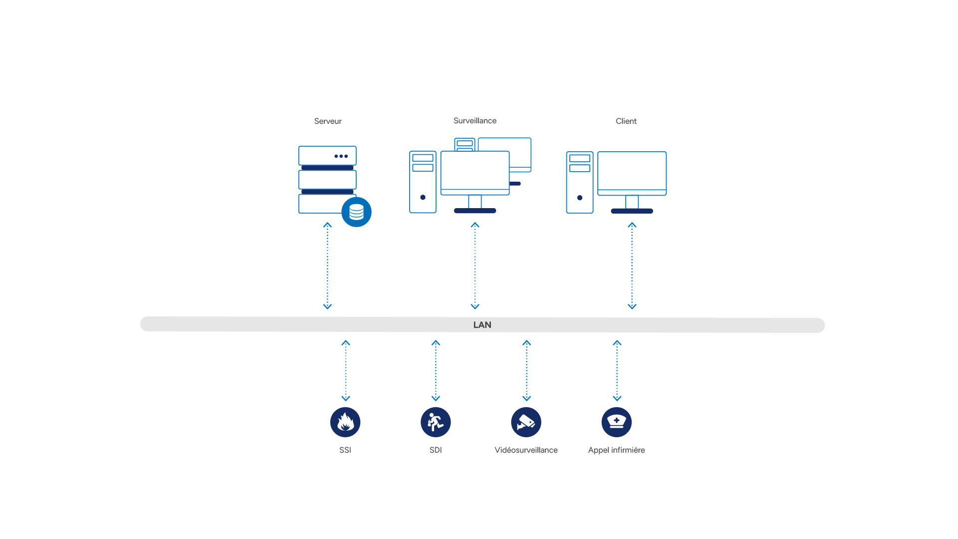 Une gestion de la sécurité et des bâtiments permet de répondre très facilement à cette exigence. Chaque secteur de l’hôpital est équipé d’un poste de travail correspondant, relié au système de gestion. Sur celui-ci, le personnel reçoit une indication précise de l’endroit où l’alarme a été déclenchée. Grâce à cette information, il peut très rapidement commencer à enquêter sur place. Parallèlement, toutes les informations convergent vers le centre de contrôle afin de déclencher et de coordonner les réactions appropriées.