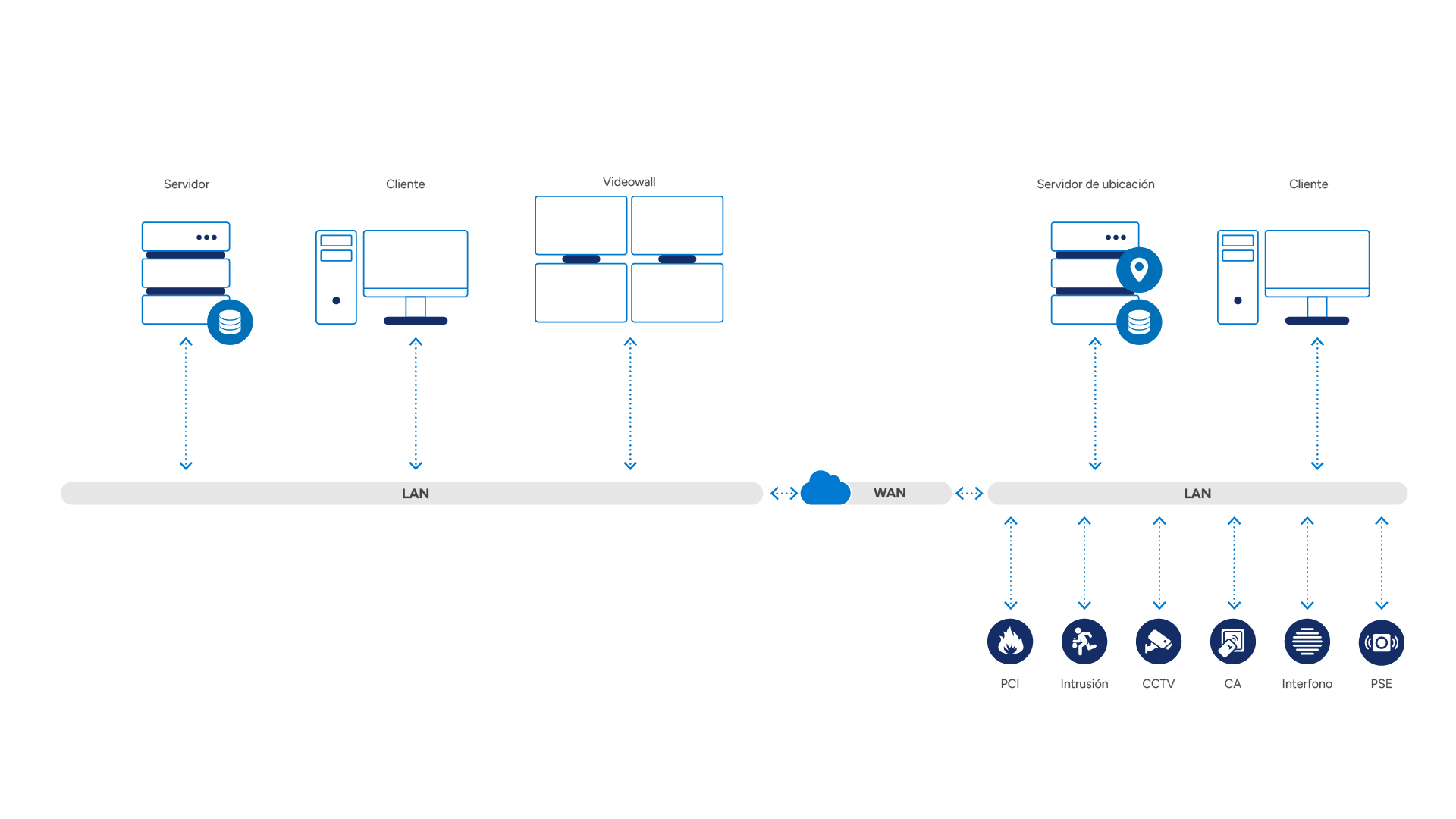 - La integración de la infraestructura informática como base de todos los procesos de comunicación también se realiza a través de WinGuard