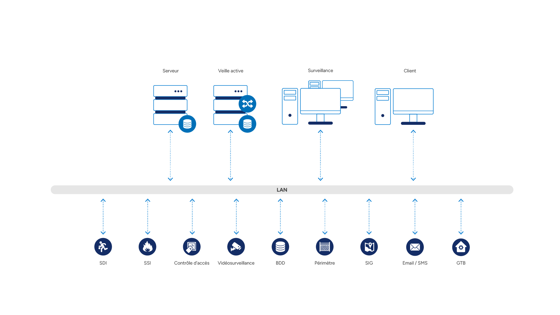 WinGuard itself is also highly available and offers multiple redundancy levels: The complete database of the main system can be carried redundantly via standby servers. Distributed sites can be networked via location servers to ensure the independent operation of the sites in case of a possible failure of the central servers or the network.