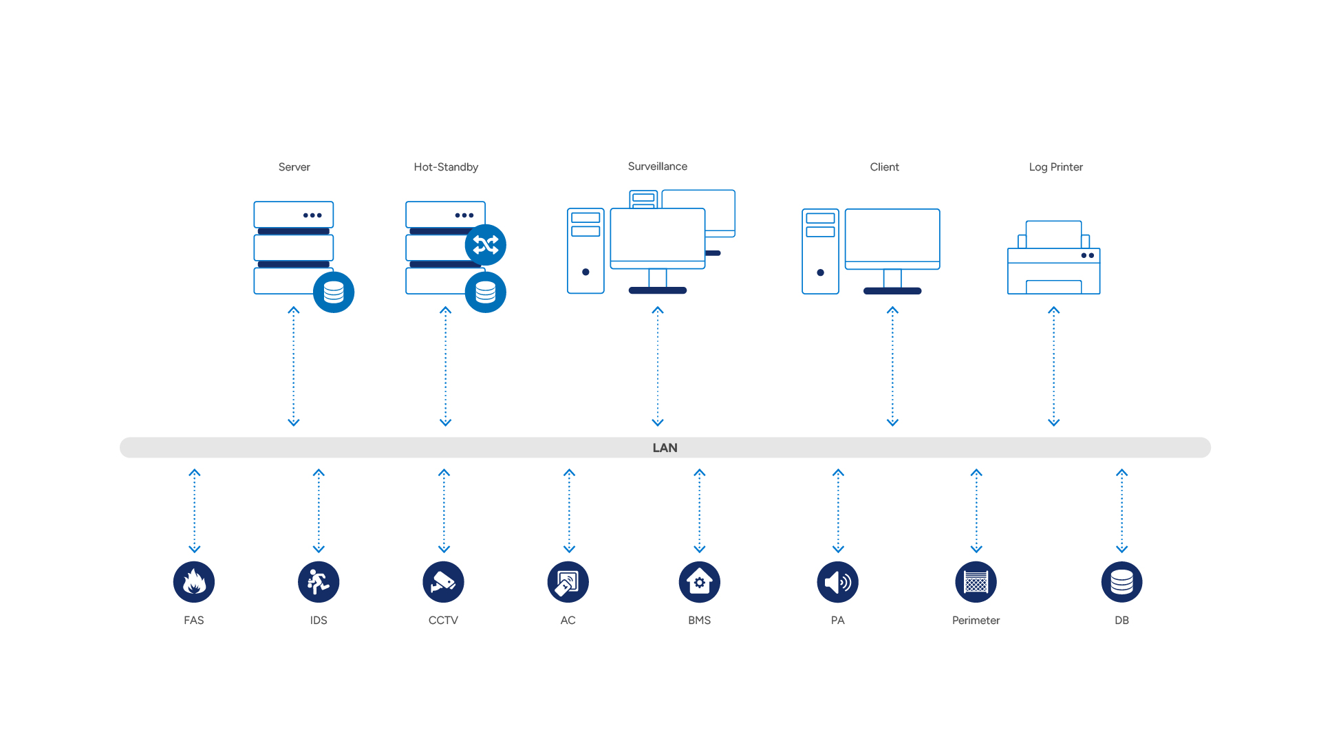With WinGuard and multiple standby servers, the complete data of the main system can be kept redundantly. This prevents failure and ensures highest availability of the Physical Security Information Management system. Distributed locations can be networked via location servers to ensure independent operation of the sites in the event of a central server or network failure.